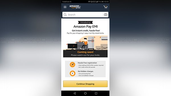 આ મહિનાની શરૂઆતમાં, એમેઝોન ઇન્ડિયાએ ભારતમાં તેની મોબાઇલ વેબસાઇટ અને એપ્લિકેશનના હિન્દી ઇન્ટરફેસની રજૂઆત કરી હતી. અને હવે, ઇ-રિટેઇલ જાયન્ટ ભારતમાં તેના વપરાશકર્તાઓ માટે એક વધુ રસપ્રદ સુવિધા રજૂ કરે છે. સિએટલ-હેડક્વાર્ટર્ડ ઇ રિટેલર એ ભારતમાં તેના મોબાઇલ વપરાશકર્તાઓ માટે એમેઝોન પે ઇએમઆઇ રજૂ કરી રહ્યું છે. નવી રજૂઆત સુવિધા વપરાશકર્તાઓને એક જ ગાળામાં સમગ્ર રકમ ચૂકવવા વગર સાઇટમાંથી ખરીદી કરવા સક્ષમ બનાવે છે.