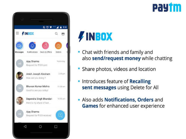 પેટીએમ ઇનબૉક્સ સુવિધાથી યુઝરને ચેટ કરવાની પણ સુવિધા આપશે