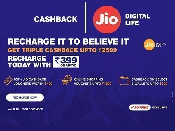 જો કે, કંપની તમને પહેલા જેવો જ લાભ ઓફર કરી રહી છે. રિલાયન્સ જિયો ઘ્વારા JIO PRIME ગ્રાહકો માટે આ ખાસ લાભની જાહેરાત કરી હતી જેમાં 399 અથવા તેના કરતા વધુ માસિક રિચાર્જ પર 2599 રૂપિયા સુધી કેશબેક મળી શકે છે.