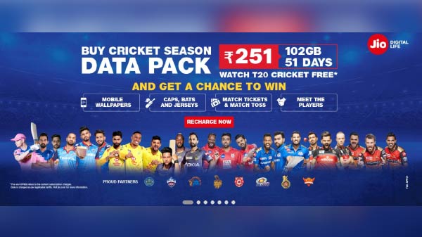 રિલાયન્સ જીઓ દ્વારા ક્રિકેટ સીઝન ડેટા પેક ને લોન્ચ કરવા માં આવ્યા