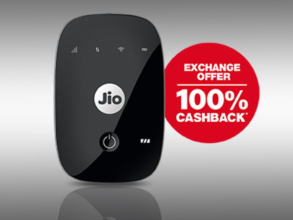 કંપનીએ બે નવી યોજનાઓ રજૂ કરી છે. પ્રથમ યોજના હેઠળ, જિયોફાઇ રાઉટર 1,005 રૂપિયા માં યુઝર ને ડેટા કાર્ડ, ડોંગલ, રાઉટરની બદલી કરી શકે છે અને બદલામાં તેમને 2010 રૂપિયાનો 4જી ડેટા મળશે. પરંતુ ત્યાં એક કેચ છે કારણ કે યુઝરને 1,999 રૂ. ફરજિયાત પ્રથમ રિચાર્જ સાથે 408 રૂપિયા, જે યોજના માટે 309 રૂપિયા અને સદસ્યતા માટે 99 રૂપિયા જે 84 દિવસ માટે મફતની ખાતરી આપે છે.