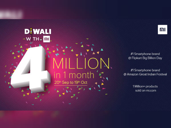 દિવાળી માસ દરમિયાન ભારતમાં 4 મિલિયનથી વધુ ઝિયામી ફોન વેચવામાં આવ્યા છે. મનુ કુમાર જૈન, ઝિયામી વીપી અને ઝિયામી ખાતે મેનેજિંગ ડિરેક્ટર ટ્વિટર અને ફેસબુક દ્વારા આ માહિતી શેર કરી છે. 20 મી ઓક્ટોબરથી 19 મી સપ્ટેમ્બરે ચાલી રહેલા "દિવાળી વિથ મી" વેચાણને કારણે આ માઈલસ્ટોન પ્રાપ્ત થયું છે. વેચાણ દરમિયાન, વિવિધ ઝિયામી ફોન્સ ડિસ્કાઉન્ટમાં ઓફર કરવામાં આવ્યાં હતાં.